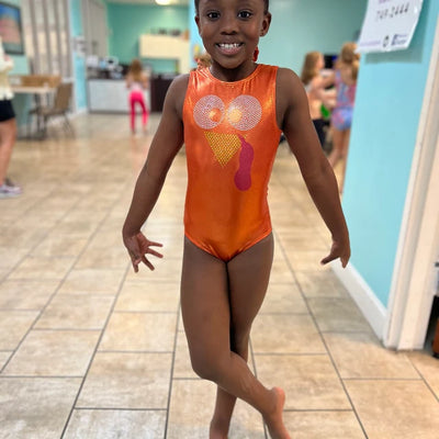 Stand out this season with our vibrant Orange Mystique Spandex leotard—a bold, shimmering shade that’s perfect for fall. Personalize it with your gymnast’s name for a truly one-of-a-kind look.