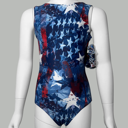Celebrate your patriotic spirit in this vibrant USA Flags Leotard. Featuring bold red, white, and blue stars and stripes details, this piece combin...