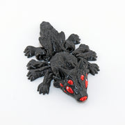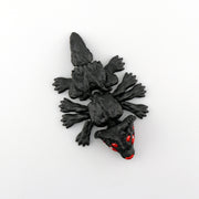 This wolf spider hybrid features a striking black body with glowing red eyes and movable legs. A fun collectible for arachnid and wolf fans and anyone who loves a little spooky flair.