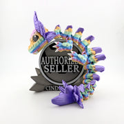 A delightful 12-inch Baby Dragon custom 3D printed with color-variegated materials. Each one features unique color patterns thanks to its handmade nature. Perfect for dragon collectors!