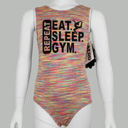 Get ready to eat, sleep, and gym in style with our Eat Sleep Gym Repeat Leotard! This gymnastics leotard comes in a variety of colors and includes a matching hair scrunchie for a complete look. Perfect for your little gymnast who never stops moving.