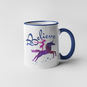 Unicorns, coaches, and gymnasts unite! This personalized Unicorn Believe mug is a one-of-a-kind gift for those who believe in magic and hard work. With a design printed on both sides, this 11 oz coffee mug is perfect for any hot drink lover. Get ready to sip and believe!