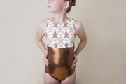 Get ready to flip and tumble in style with our Gingerbread Cookie Leotard! Made for gymnastics, this leotard comes with a matching hair scrunchie for the perfect finishing touch. So cute, you'll want to wear it every day! (Note: may induce cravings for actual gingerbread cookies).
