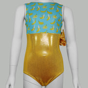 Get ready to go bananas in this playful gymnastics leotard. Along with a matching hair scrunchie, this leotard will have you flipping and tumbling in style. Don't monkey around, add this versatile leotard to your gymnastics wardrobe today!