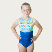 This leotard is perfect for gymnasts who want to show off their love of beam. With its gnomes on the front, blue Mystique fabric, and matching hair scrunchie, the AERO Leotards exclusive Beam Gnomes Leotard will make you stand out from the rest!