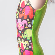 Stand out and have fun in the Calico Elephants Leotard! Includes matching hair scrunchie.