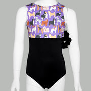 Introducing the Dogs Leotard - comfortable and stylish with a cute purple dogs print fabric. Complete with a matching hair scrunchie. Perform your best and show your love for dogs!