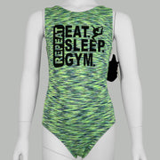 Get ready to eat, sleep, and gym in style with our Eat Sleep Gym Repeat Leotard! This gymnastics leotard comes in a variety of colors and includes a matching hair scrunchie for a complete look. Perfect for your little gymnast who never stops moving.