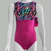 Get ready to stand out from the crowd with our Geometric Zig-Zag Leotard! Perfect for gymnastics, this leotard features a classic scoop-back design, traditional leg cut, and comes with a matching hair scrunchie. Embrace your unique style and rock this leotard at your next competition or practice.