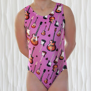 Get ready to rock the gym floor with our Guitar Gymnastics Leotard! This stylish leotard is perfect for your gymnastics routine, with a matching hair scrunchie included for a complete look. The contrasting black lycra back adds a touch of edginess to your performance. Show off your skills and stand out with this unique leotard!