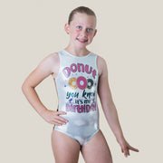 Get ready to celebrate in style with our Donut Birthday Leotard! Featuring a playful birthday saying on the front and a fun donut print on the back, this leotard is perfect for any birthday girl. Plus, we've included a matching hair scrunchie for the ultimate birthday look! Donut miss out on this sweet and sassy leotard!