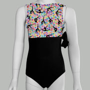 Get ready to flip and tumble with this playful Geometric & Gymnasts Leotard! Made specifically for gymnasts, this leotard features a stylish geometric pattern and comes with a matching hair scrunchie. Perfect for showing off your moves and personal style at the gym.