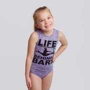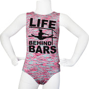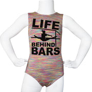 Perfect for gymnasts who love the uneven bars! With a fun saying design and comfortable fit, this leotard is ideal for long practice sessions. Choose from multiple colors to express your personality. Includes a matching hair scrunchie.