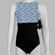 Get ready to show off your "jawsome" moves at the gym with our Shark Print Leotard, perfect for gymnastics and comes with a matching hair scrunchie for a complete look!