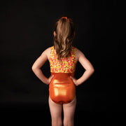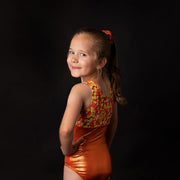 This adorable Candy Corn Mystique Spandex leotard is sure to put a smile on everyone's face! It's a perfect treat for any gymnast, and includes a coordinating hair scrunchie. It's available in 2 colors, yellow and orange, so you can pick the perfect one for your little one!