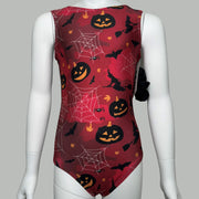 Get ready to flex your spooky style with our Spooky Halloween Leotard! This terrifyingly trendy gymnastics leotard comes with a matching hair scrunchie for a fully coordinated look. Perfect for Halloween competitions or just showing off your love for all things spooky.