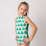 Get ready to rock St. Patrick's Day with our Shamrock Leotard! This bold leotard has a lively green mystique back and includes a matching hair scrunchie. Ideal for gymnastics and dance shows, you'll be feeling lucky and looking fabulous!