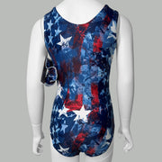 Show off your patriotic pride with the USA Flag Leotard by AERO Leotards. This leotard features a bold print on both sides and a traditional leg cut, ensuring you look and feel confident during gymnastics. Plus, it comes with a matching hair scrunchie!
