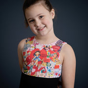 Show off your flips and tumbles in our Retro Valentine's Leotard! Made from a super comfortable fabric, this classic scoop-back tank leotard features a unique retro Valentine's Day print. It also comes with a matching scrunchie for your little gymnast. This outfit is perfect for celebrating Valentine's Day!