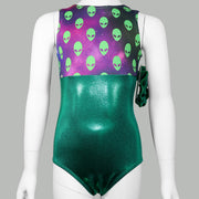 Leap into out-of-this-world routines with our Alien Space Leotard. This gymnastics leotard comes complete with a matching hair scrunchie for the perfect look. Ready to take your moves to the next level? (It's literally out of this world!)