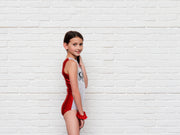 This adorably festive gymnastics leotard is perfect for your little girl to show off her Christmas spirit! The fun holiday elf squad design is printed on a soft and stretchy leotard, with a contrasting red Mystique backside. A hair scrunchie is included to complete the look. Your little girl will be comfortable and stylish while doing flips and cartwheels all holiday season long!