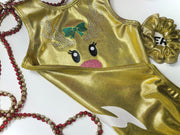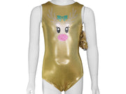 Get ready to leap into the holiday season with this adorable Reindeer Leotard! Perfect for gymnastics and playtime, this leotard comes with a matching hair scrunchie for added cuteness. Spread joy and festive spirit with every flip and jump in this quirky and fun leotard.