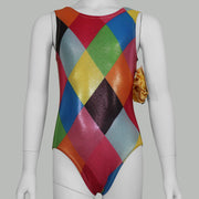 Twirl and tumble in style with our Circus Clown Leotard! This playful gymnastics leotard features a matching hair scrunchie and contrasting yellow Mystique fabric on the back. Perfect for adding a fun touch to your routine.