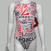 The Legacy Leotard 2025 features custom front printing and a red Mystique back. A matching hair scrunchie is included.